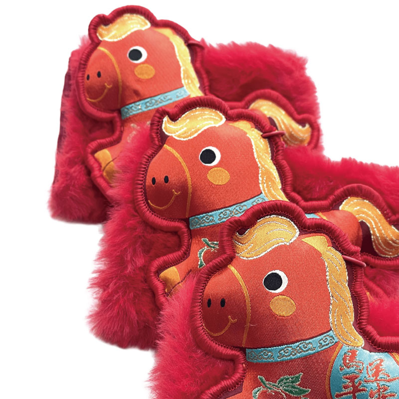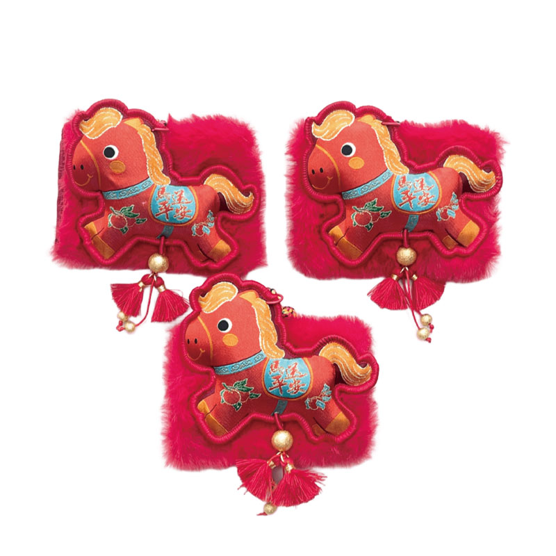 可愛的刺繡小馬,結合柔軟的絨毛紅包袋