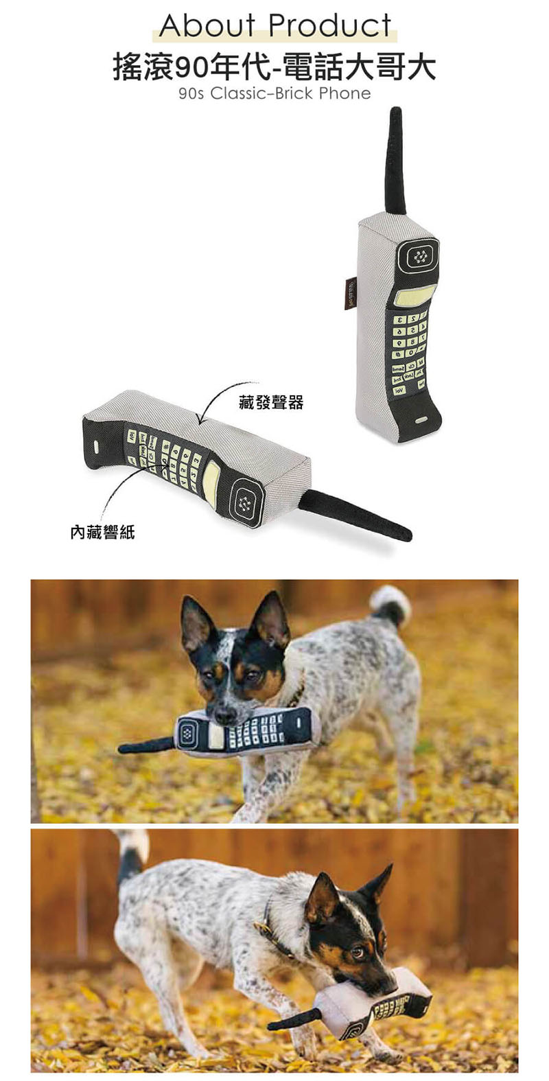 ♦ 內藏響紙、管狀發聲器,讓狗狗享受打電話樂趣