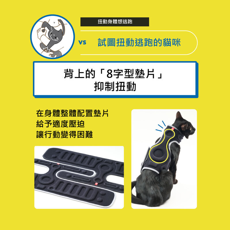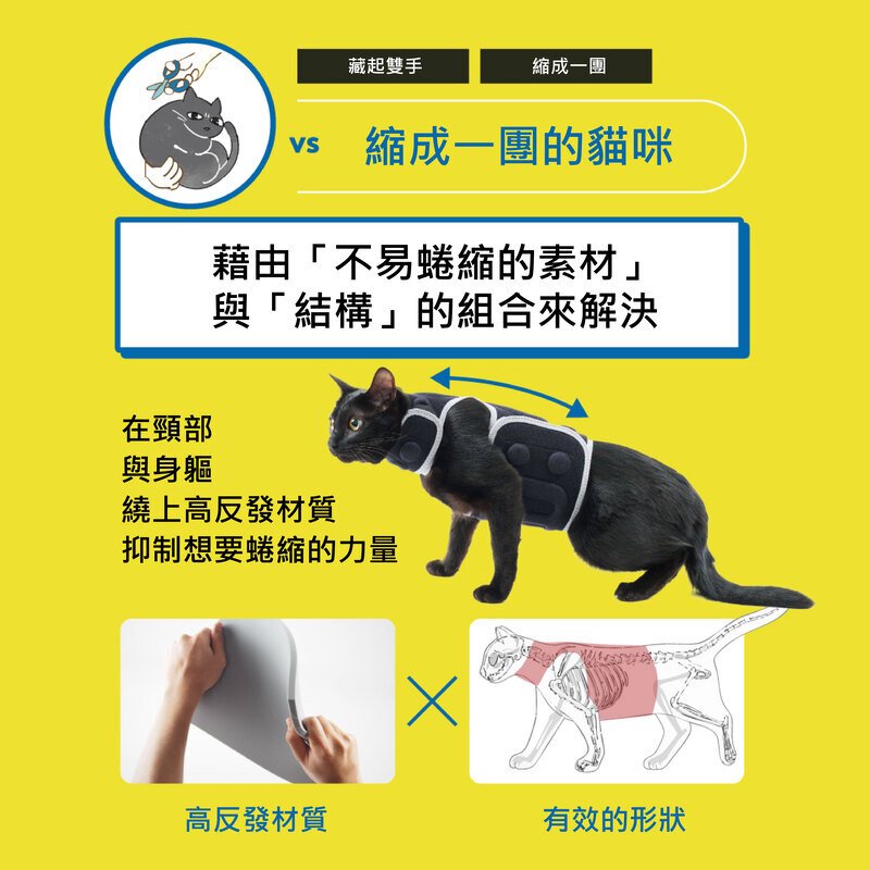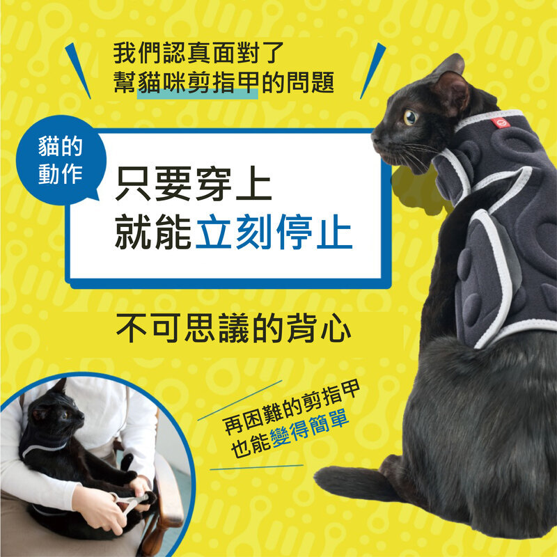 為了減少貓咪在照護過程中的不適與壓力,我們特別設計了這款背心,希望能幫助飼主更輕鬆地照顧愛貓,也讓彼此的關係更親密。