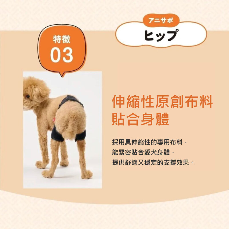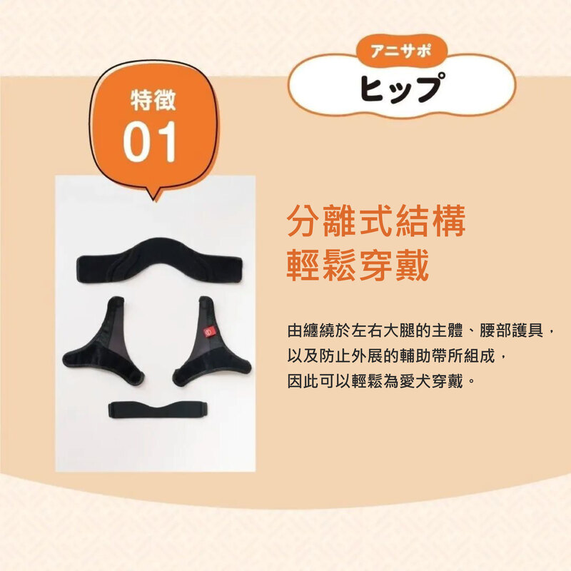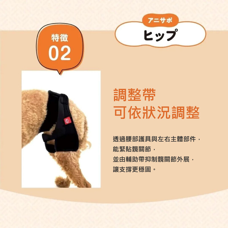 專為小型犬設計的髖關節專用護具,透過穩固支撐與舒適貼合,幫助減輕關節負擔,讓日常行走更安心。