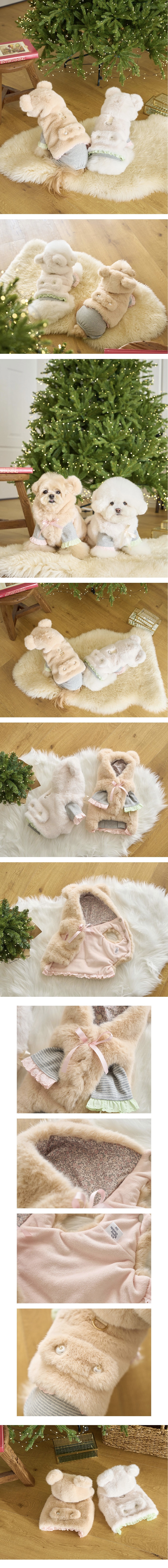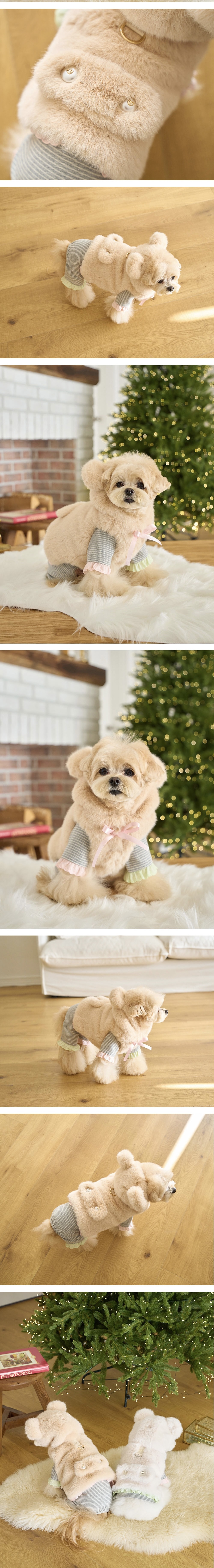 熊寶寶造型溫暖外套,使用高密度長毛人造皮草,保暖柔軟又有型。搭配可愛熊耳帽,胸前蝴蝶結與蕾絲細節,讓毛孩一秒變身冬日小萌熊。帽子可固定不滑落,另附D環方便外出牽繩連接,保暖與實用兼具。