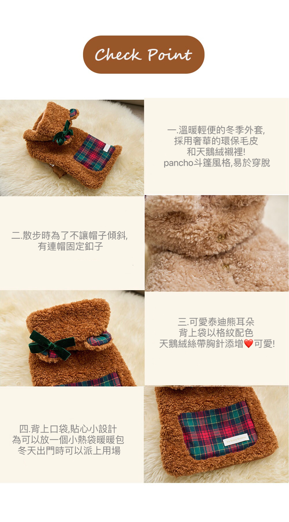 pancho斗篷風格,是泰迪熊兜帽的造型毛背心,易於穿戴脱。