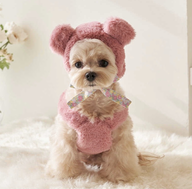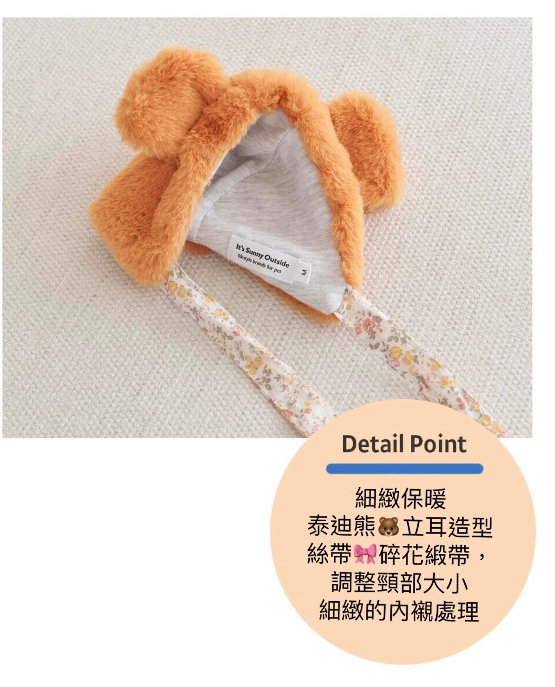 造型帶有泰迪熊耳朵的毛茸茸帽,點亮商品特色,與毛茸茸保暖背心搭配在一起更可愛。在寒冷的冬天也能擁有出色保暖的產品。它也可以像不戴着,也可以掛戴在脖子上像連帽外套一樣展現。