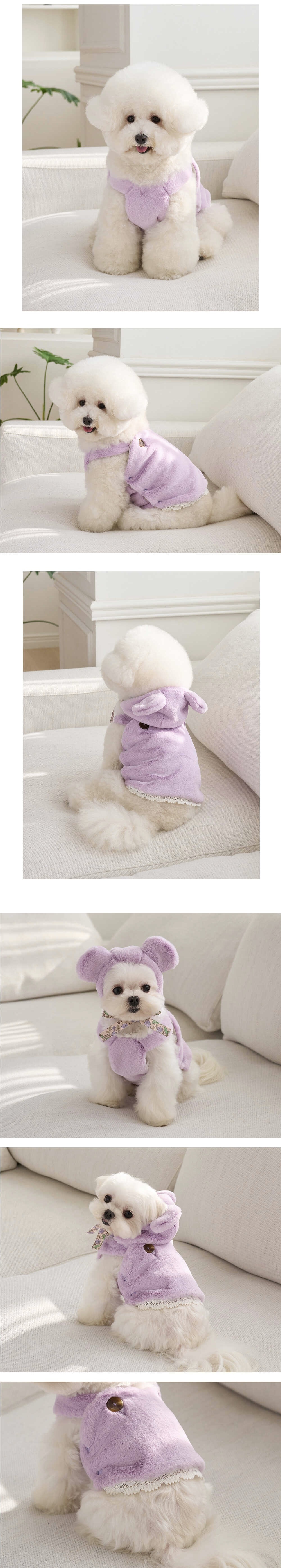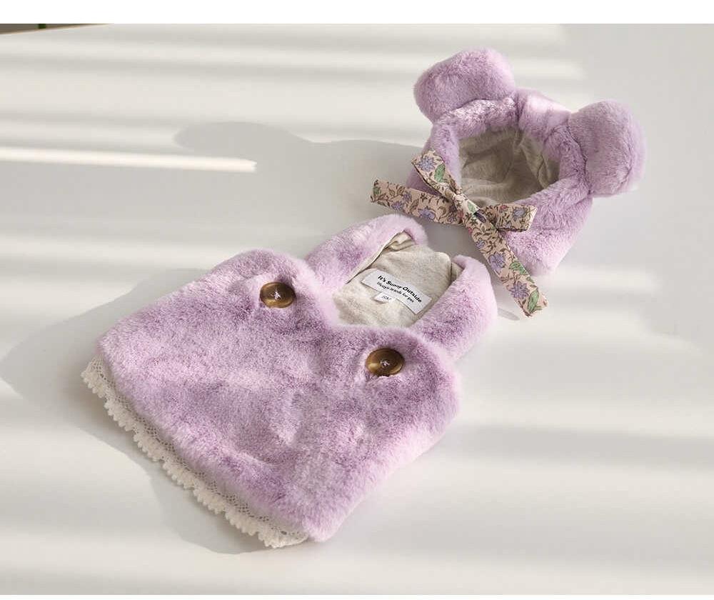 它是一種簡單而奢華的皮草產品,採用奢華的人造皮草,易於穿脫的按扣和肩部鈕扣,以及蕾絲的下擺。