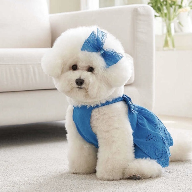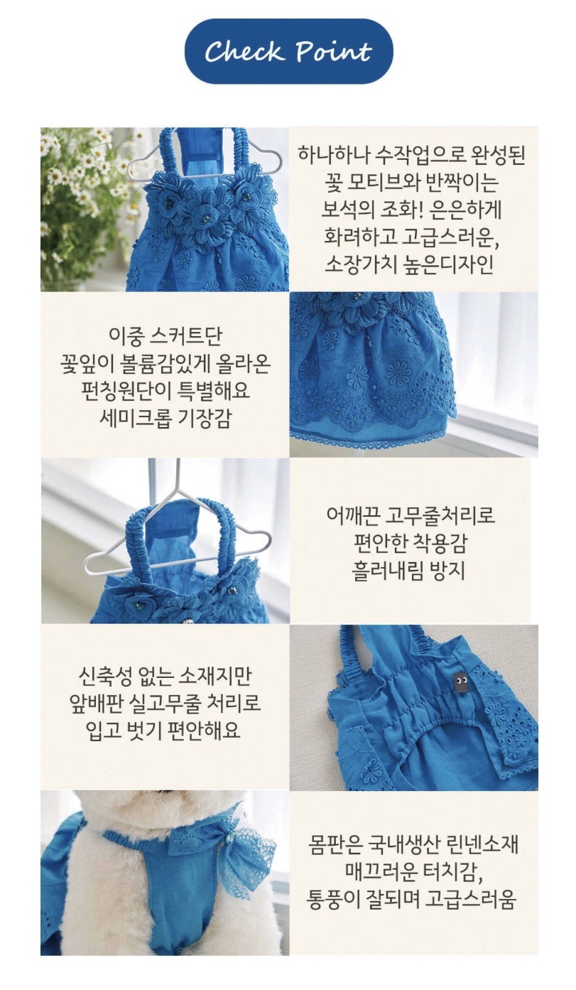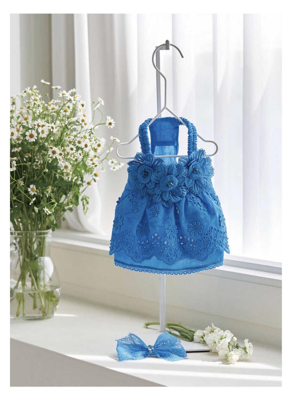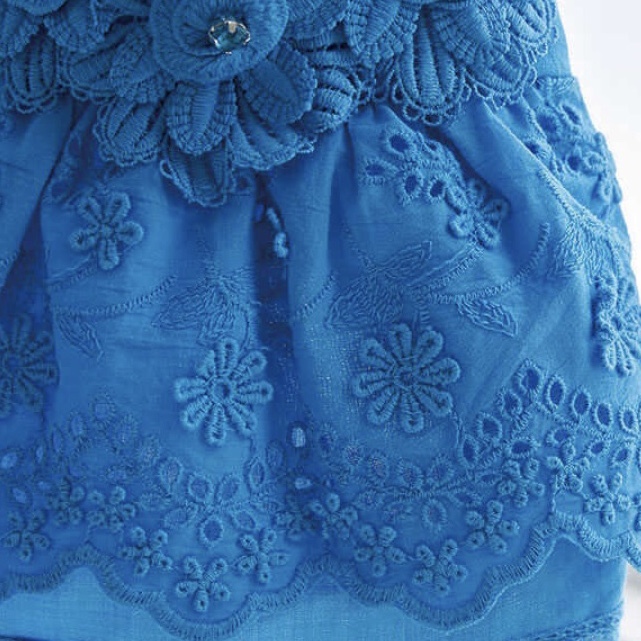 Blooming 初夏亞麻蕾絲花朵裙-土耳其藍