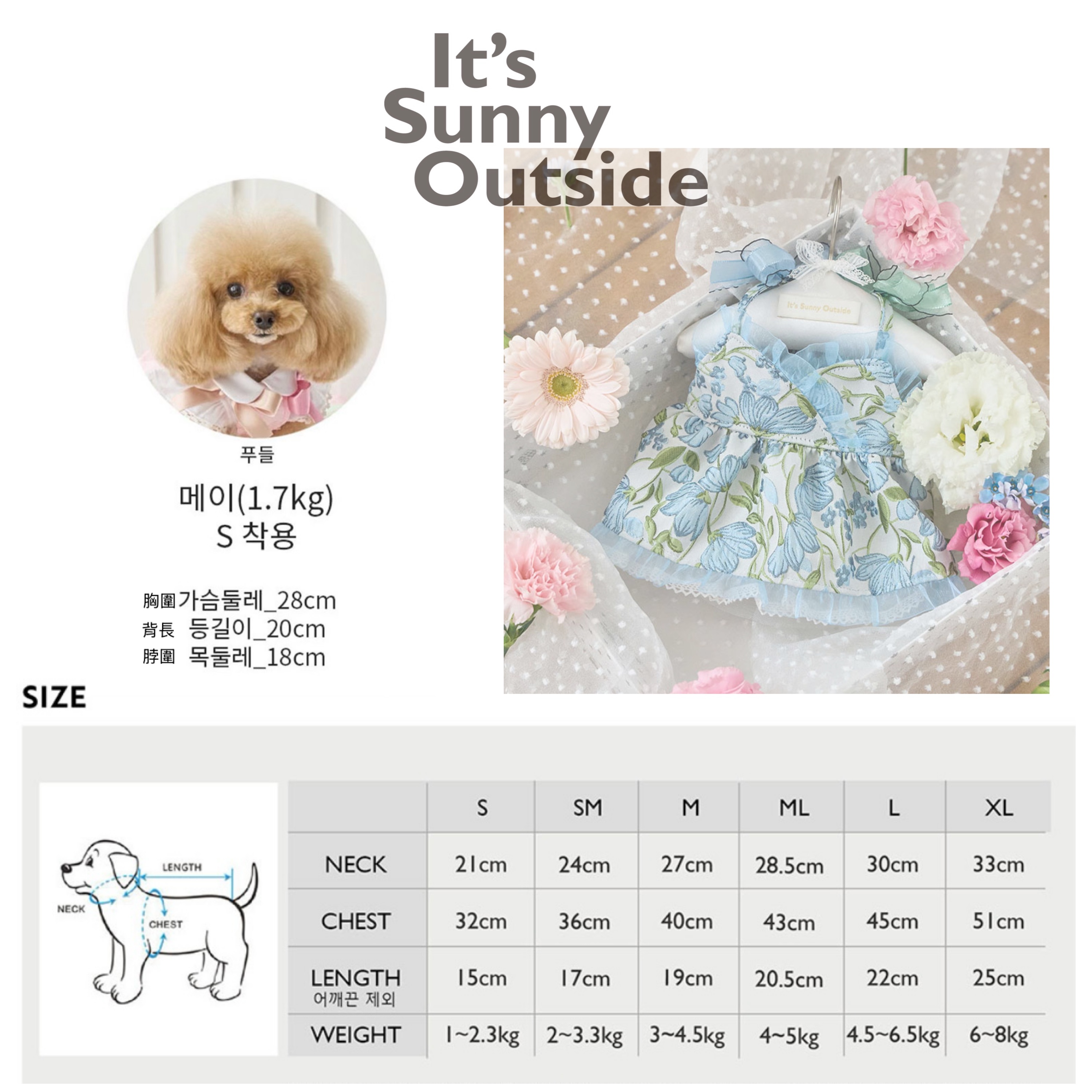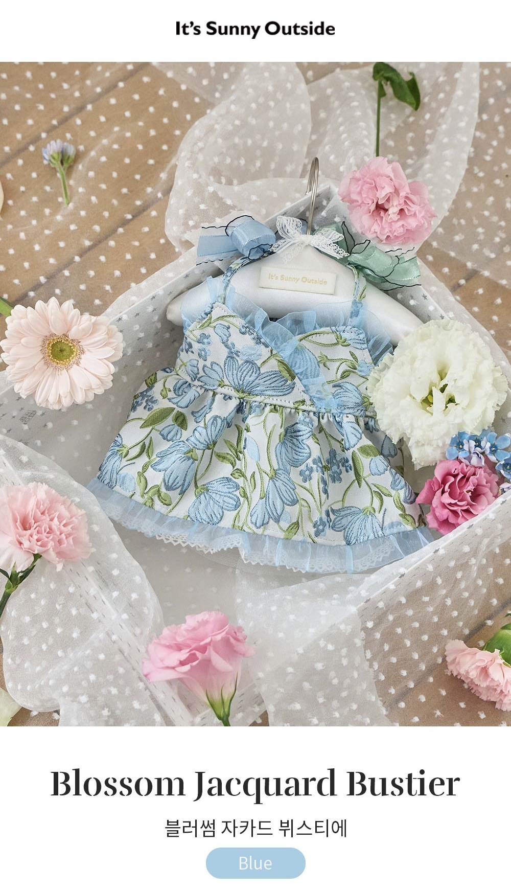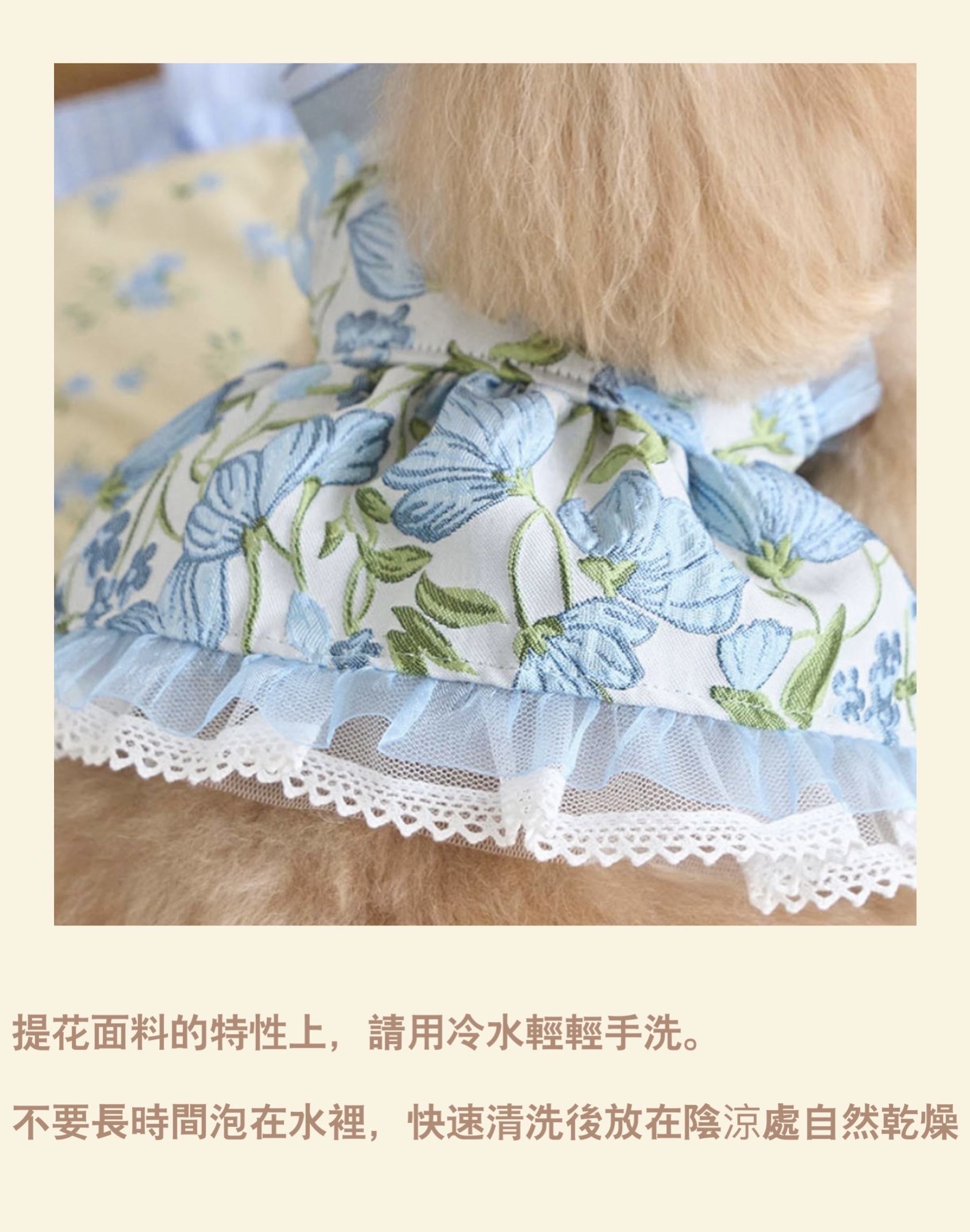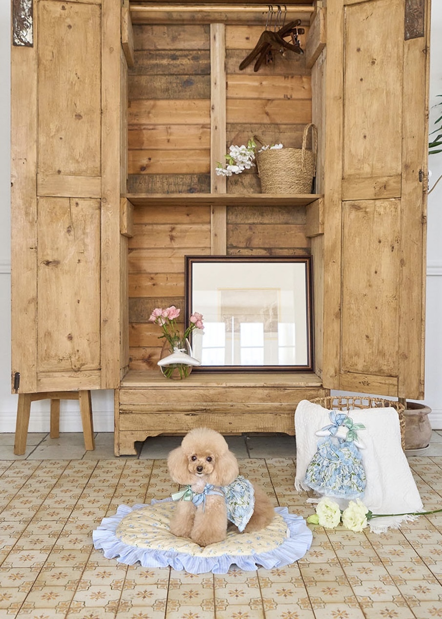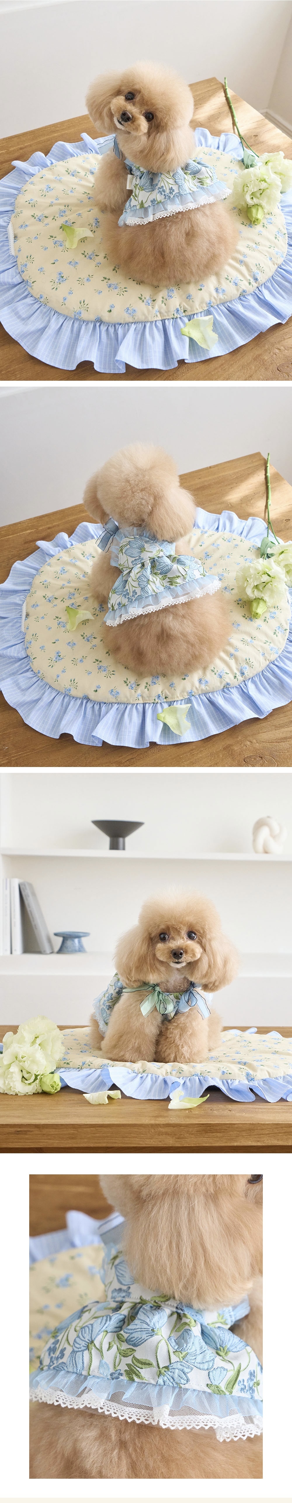 春日限定的浪漫藍色系,細緻緹花與層次紗裙設計,讓毛孩一穿上就像小公主般優雅迷人。