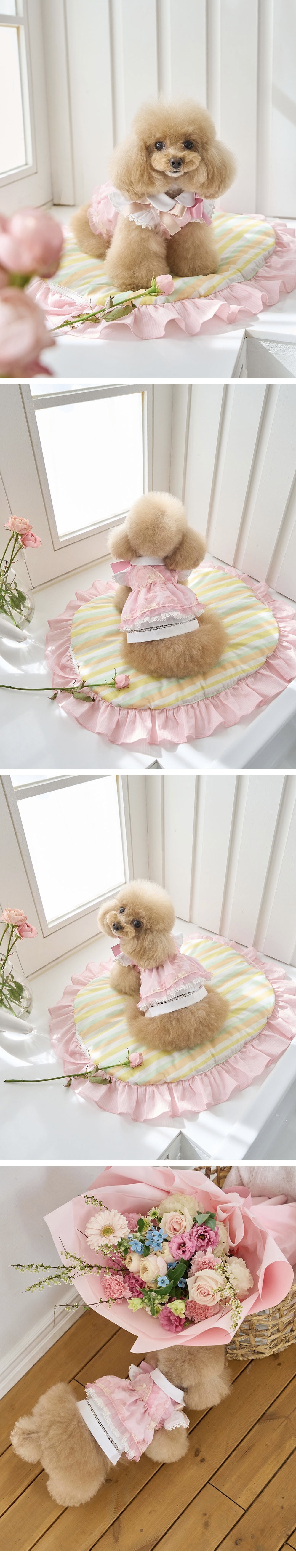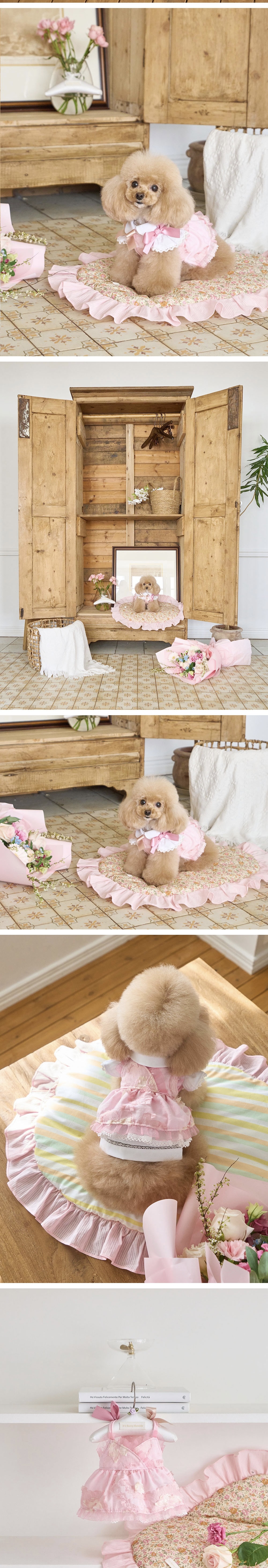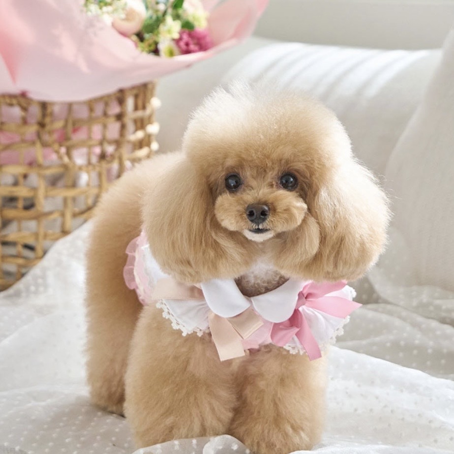 柔美粉色搭配細緻緹花布料,展現春日浪漫氛圍。立體剪裁與層次裙擺設計,讓毛孩穿上宛如小公主般優雅迷人。