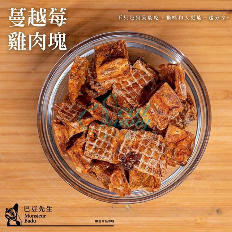 巴豆先生系列 /蔓越莓雞肉塊 硬脆 成分:雞肉、蔓越莓、起司、樹薯粉、甘油、維生素C、維生素E、甘胺酸