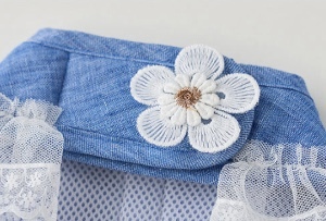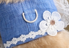 雛菊亞麻胸背~由It's Sunny首次推出,100%亞麻面料,搭配透氣網布襯裡,柔軟舒適的魔術貼背帶,胸背肩兩側的蕾絲飾邊和下擺的蕾絲點與丹寧藍色調相融合,盡顯俏皮氣質。