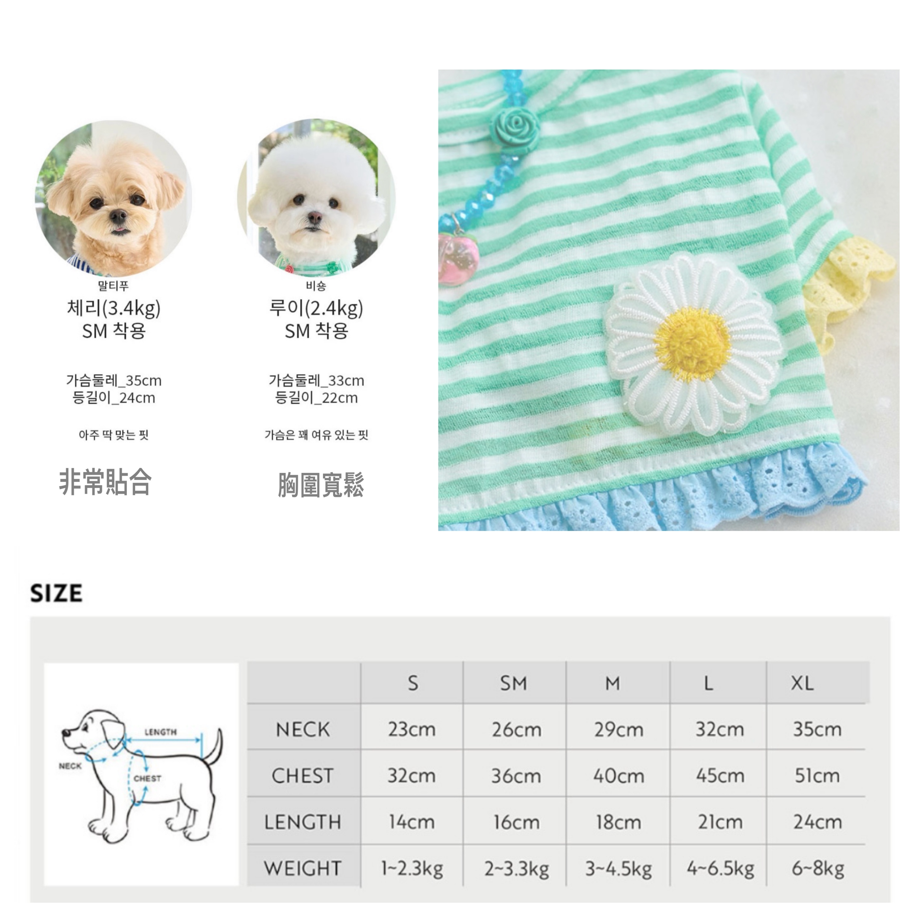 如果狗狗身形標準,建議選擇平常穿著尺寸即可。