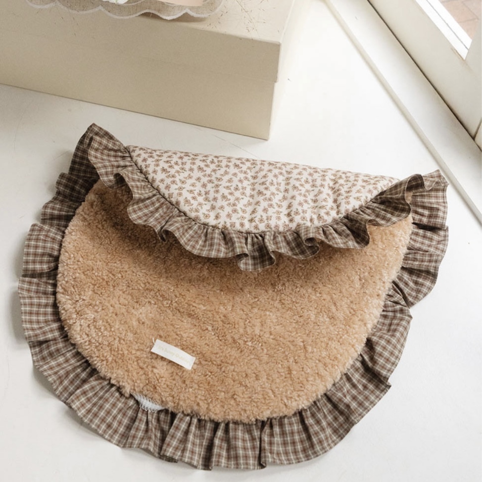 柔軟親膚的仿羊毛材質結合格紋與小花布料拼接,雙面皆可使用。