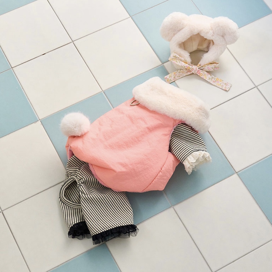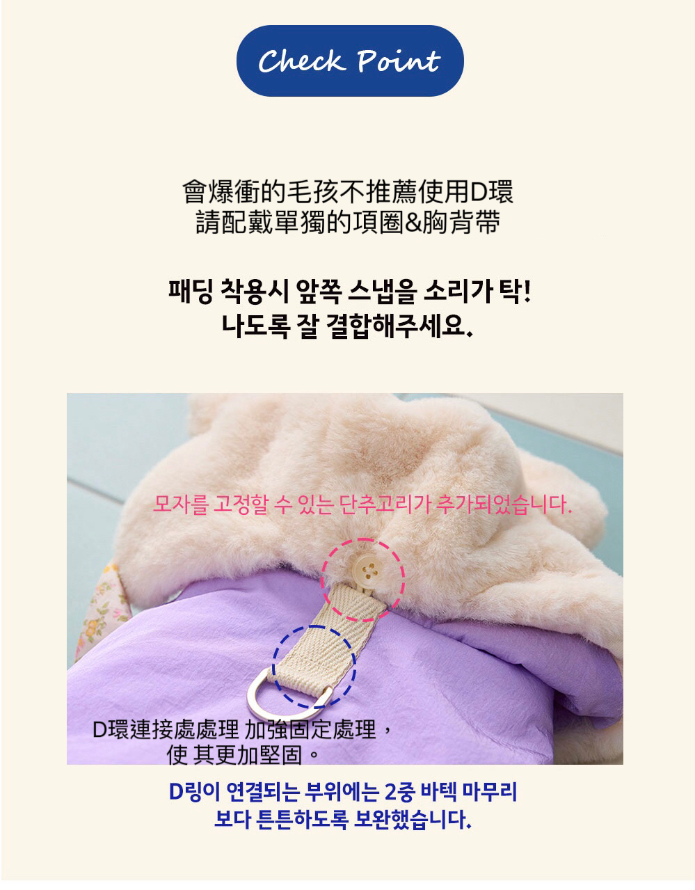 簡約的設計可以輕鬆搭配各種內衣,搭配小熊帽子更顯 可愛!(內搭衣&保暖帽另購)