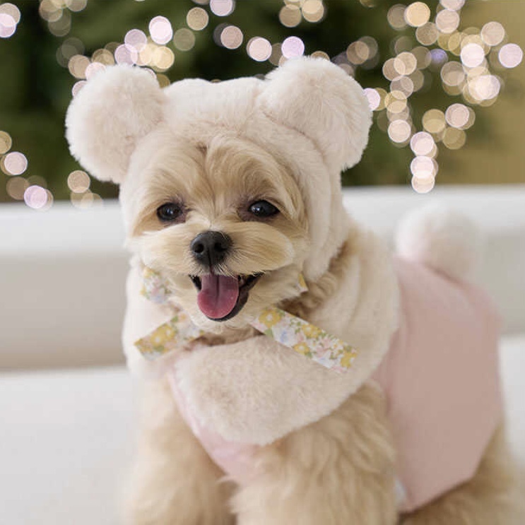 毛領子與色彩感十足的可愛蓬蓬設計、填充天鵝絨內襯,使用6盎司棉花,溫暖兒輕盈。