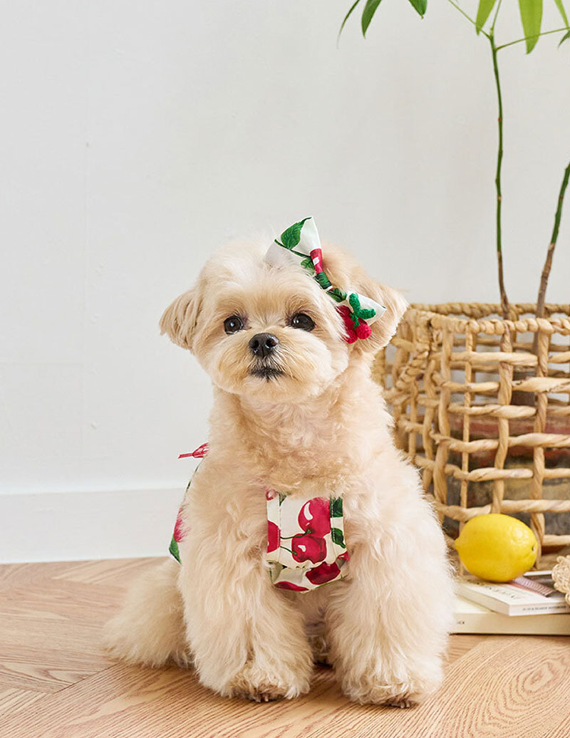 搭配櫻桃背心裙的髮夾,小針織櫻桃增加亮點✨