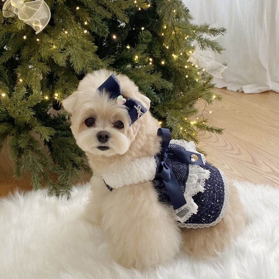 今年冬季推出溫柔靜謐的海軍藍義大利羊毛毛呢,搭配細緻閃耀的銀色亮片點綴,營造出全新的節慶氛圍,為毛孩打造優雅迷人的假期造型✨
