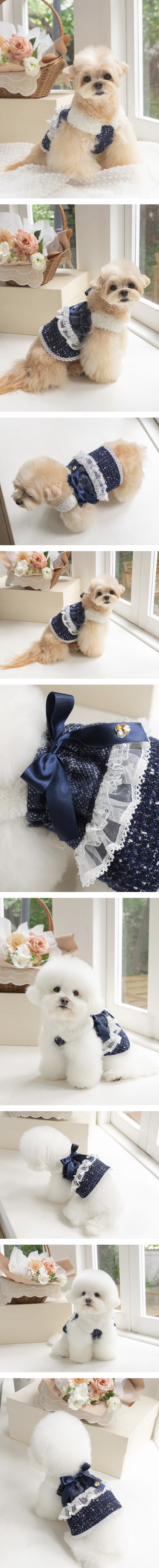 胸前特別裝飾有施華洛世奇水晶鈕扣與緞帶蝴蝶結胸針(可拆卸),閃爍優雅氣質小細節,每個角度都讓毛孩成為全場焦點。