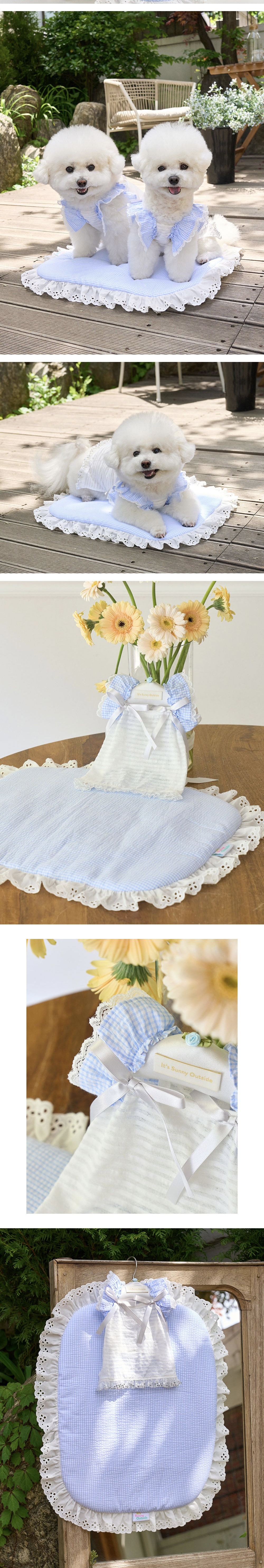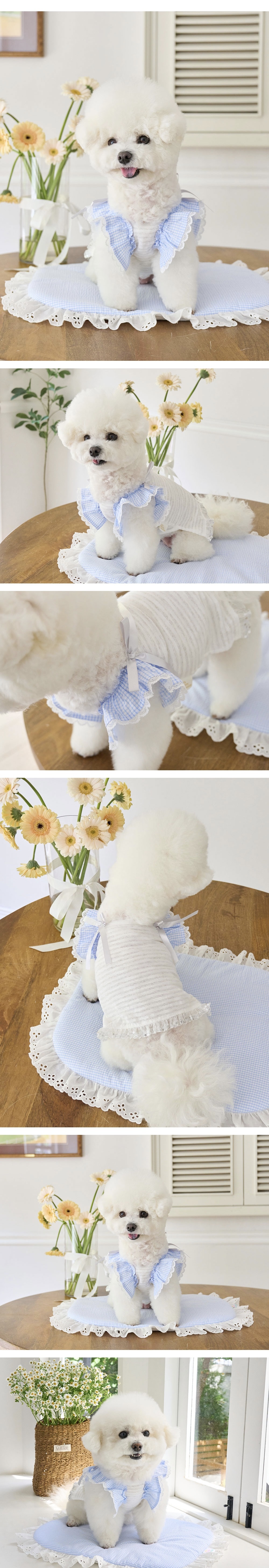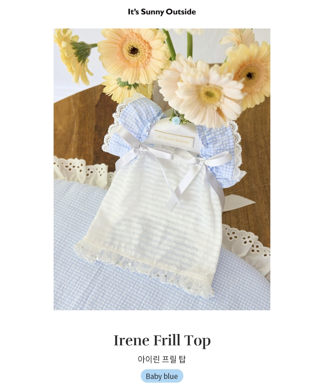 肩部蓬鬆的藍白格紋荷葉邊,搭配銀色緞帶與細緻亮片,展現夢幻感十足的可愛風格。
