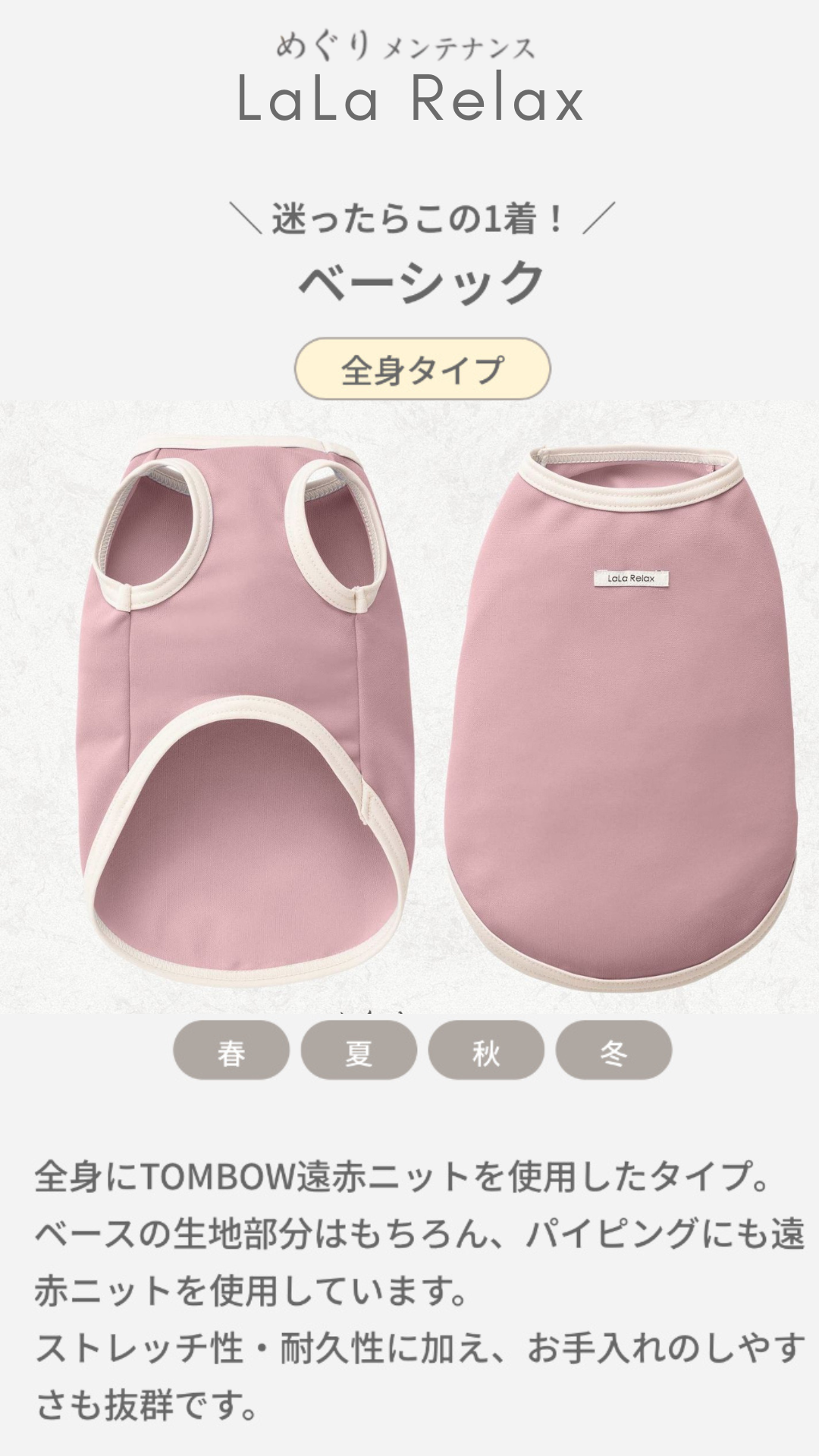 全身遠紅布料、促進循環、維持體溫,四季皆宜。最具「LaLa Relax」象徵性的經典款。