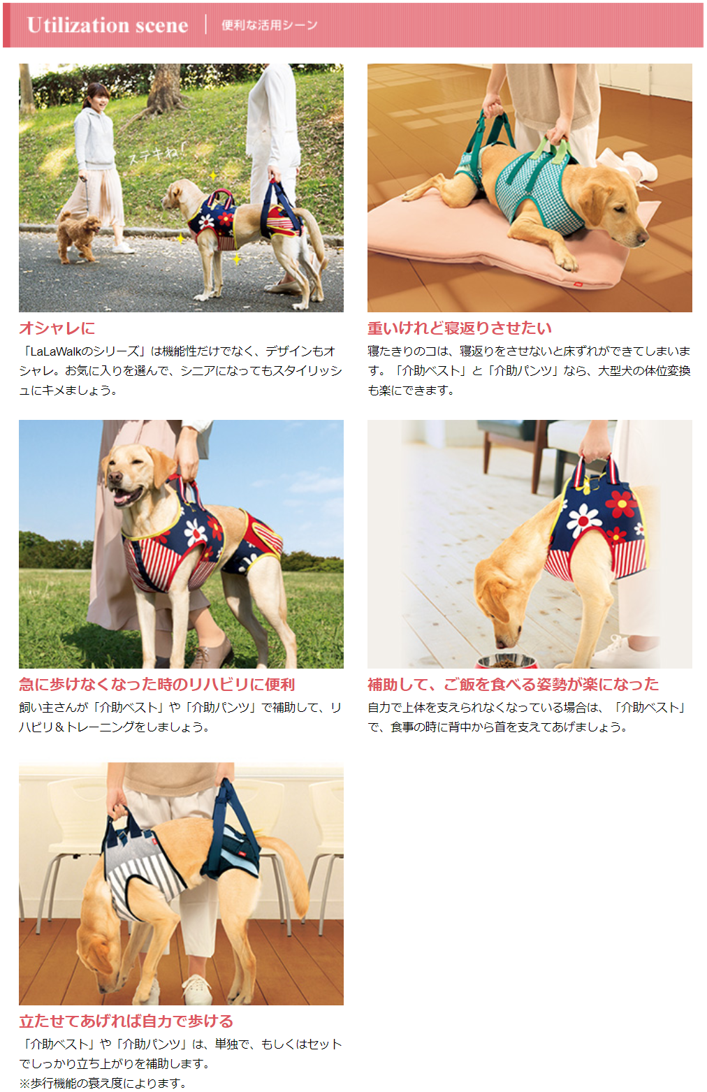 LaLaWalk為一款由日本的學生服頂級製造商「トンボ Tombow」替寵物狗開發的一種步行輔助器具。