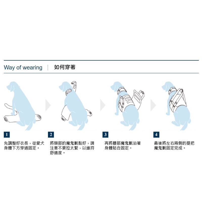 *此產品為針對大型犬設計,根據每個狗狗的體型不同可能會有尺寸不匹配的情況發生。