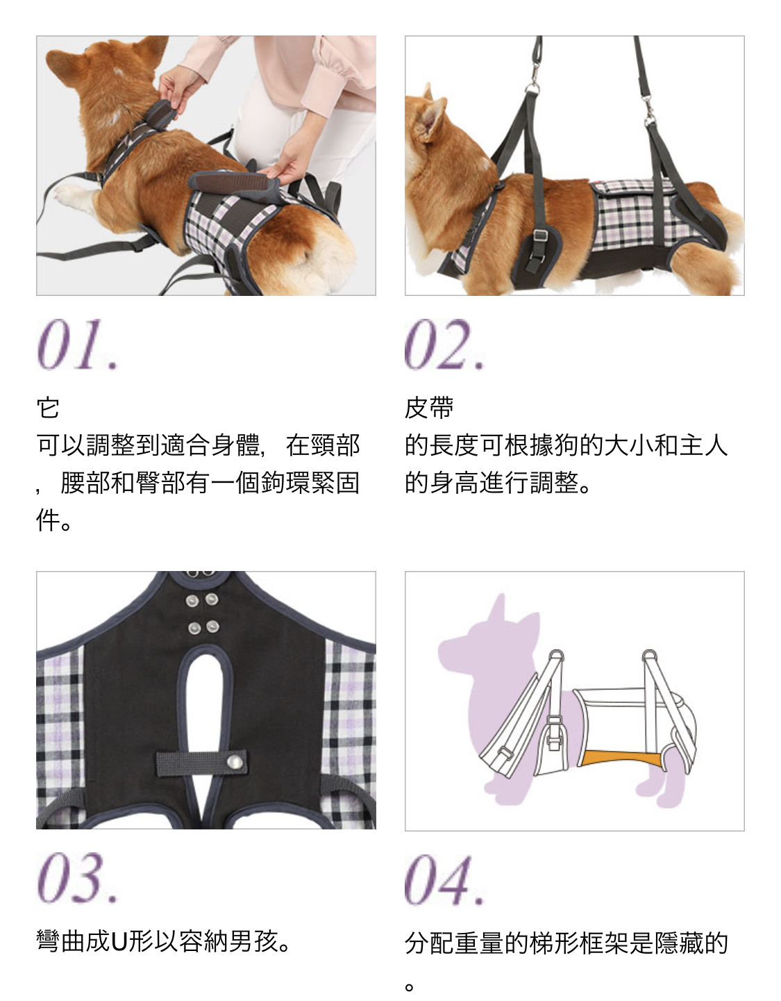 輔助用品,是接觸毛孩、身體、皮膚、毛髮之商品,適合穿戴在需要輔助的毛孩身上,例如老犬、復健、術後恢復需求之毛孩。