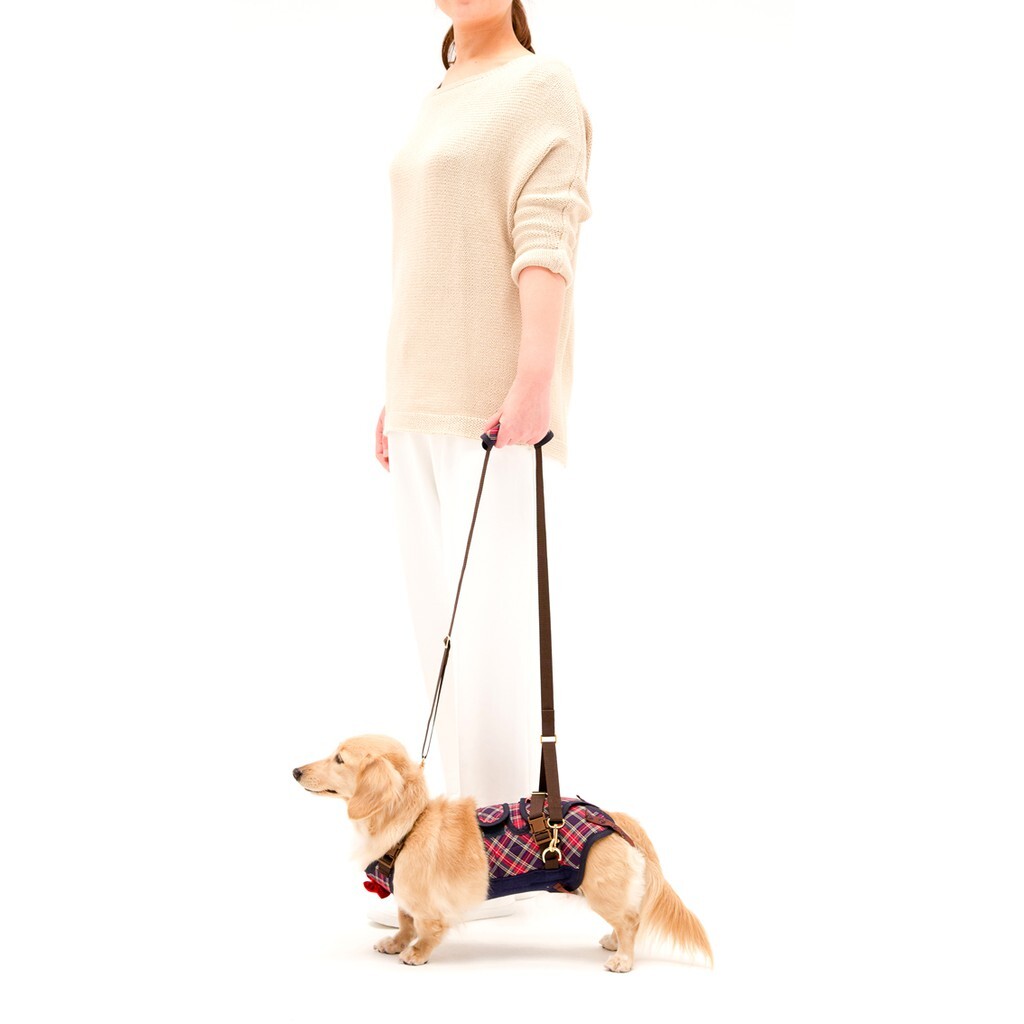 透過特製的輔助帶,讓腿部力量逐漸衰退的狗狗,能在主人的給予協助下繼續行走,幫助狗狗腿部肌肉力量的效果。