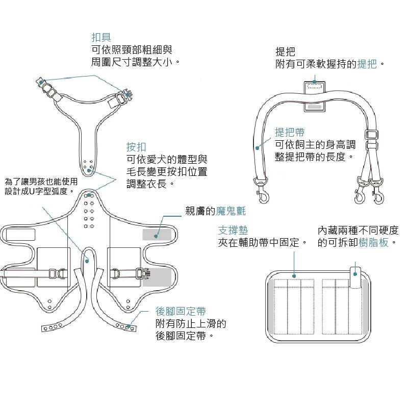 輔助用品,是接觸毛孩、身體、皮膚、毛髮之商品,適合穿戴在需要輔助的毛孩身上,例如老犬、復健、術後恢復需求之毛孩。