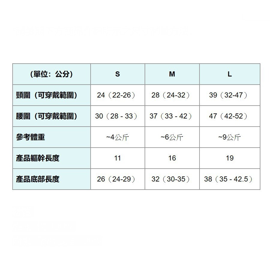 *此產品為針對中小型犬設計,根據每個狗狗的體型不同可能會有尺寸不匹配的情況發生。