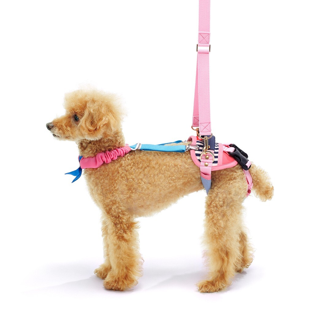 透過特製的輔助帶,讓腿部力量逐漸衰退的狗狗,能在主人的給予協助下繼續行走,達到輔助狗狗腿部肌肉力量的效果。