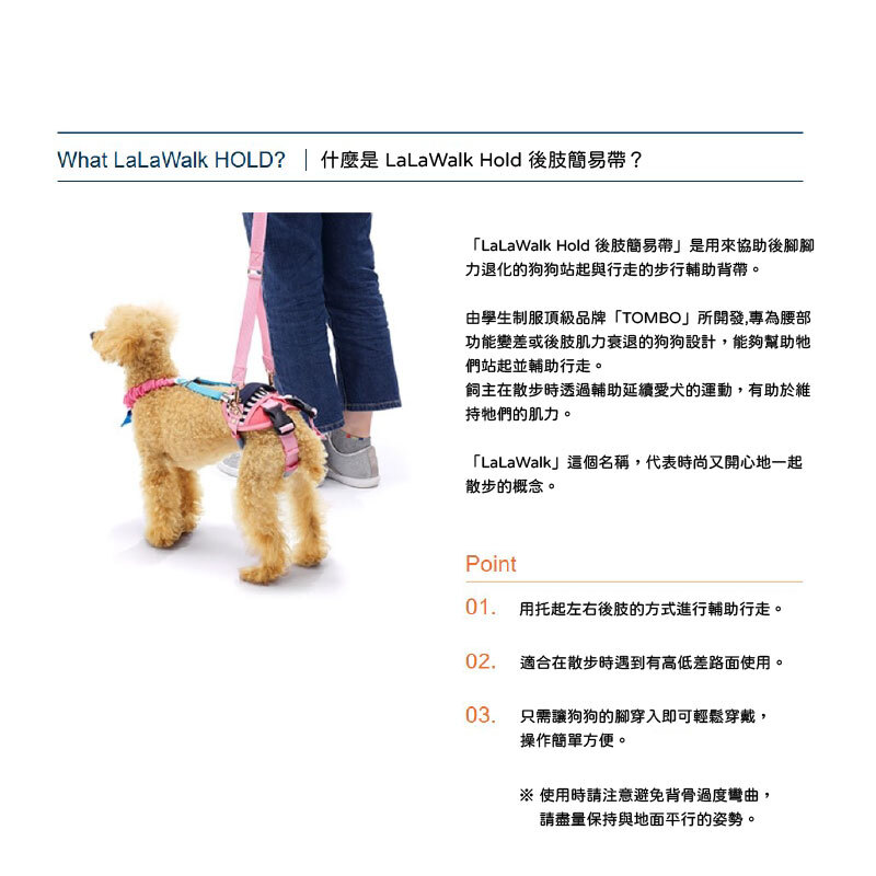 LaLaWalk為一款由日本的學生服頂級製造商「トンボ Tombow」替寵物狗開發的一款步行輔助器具。
