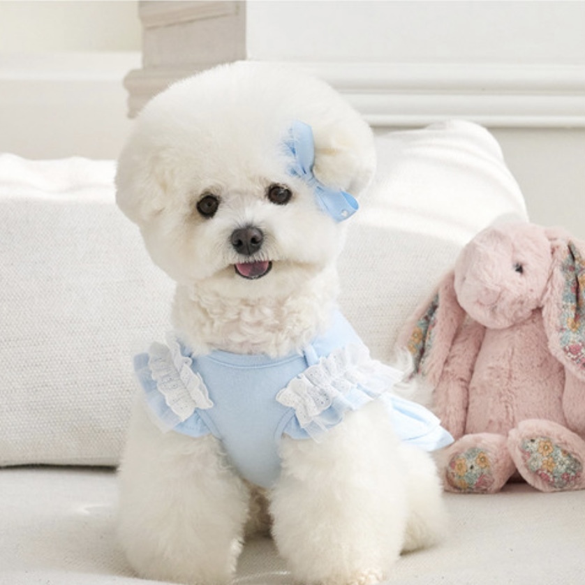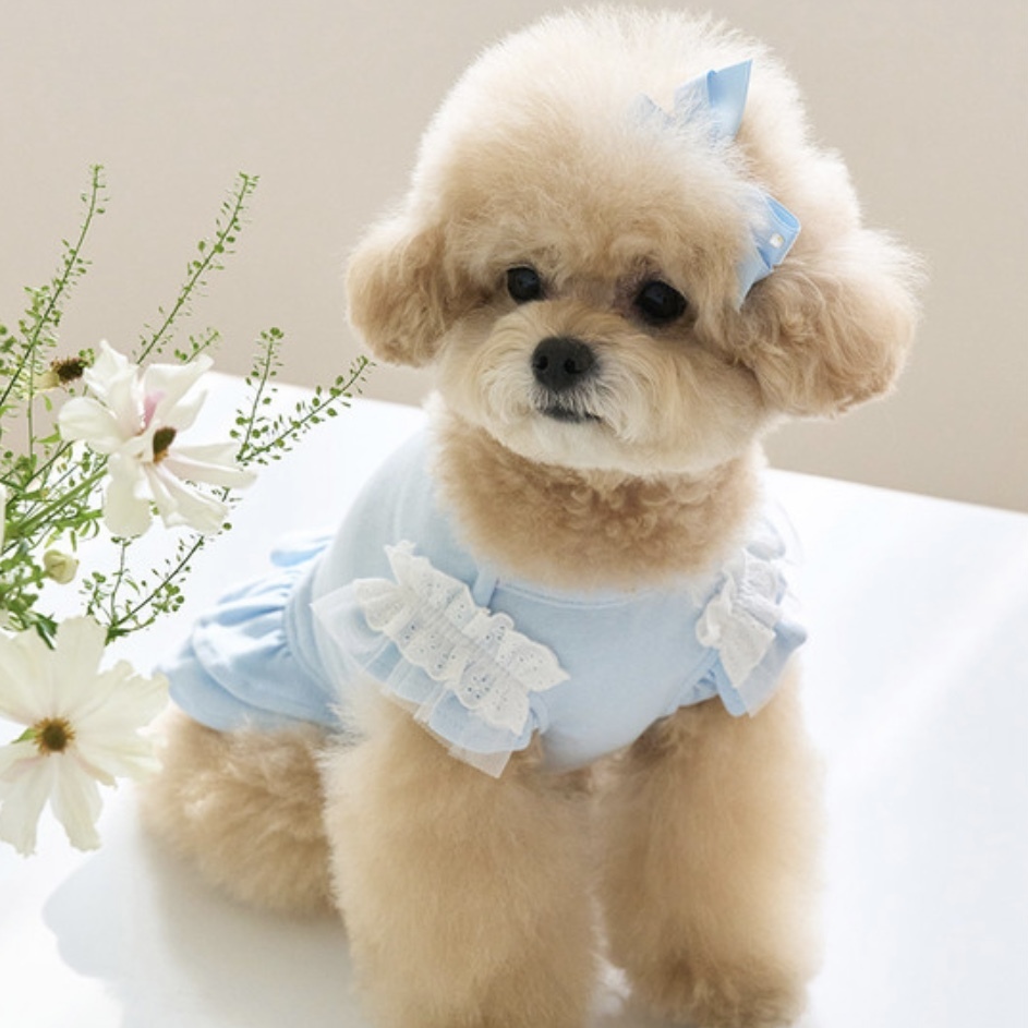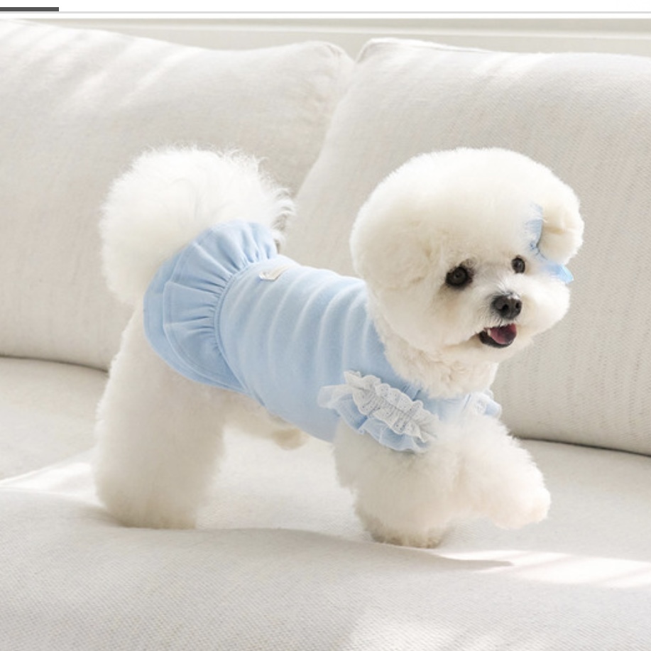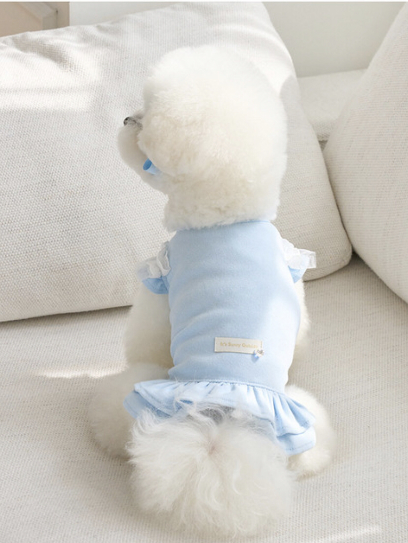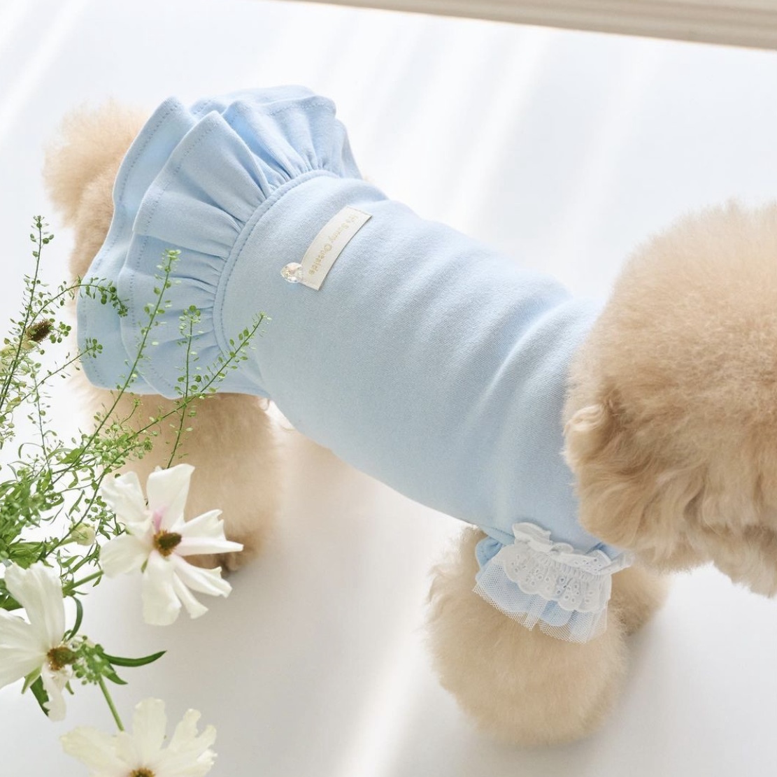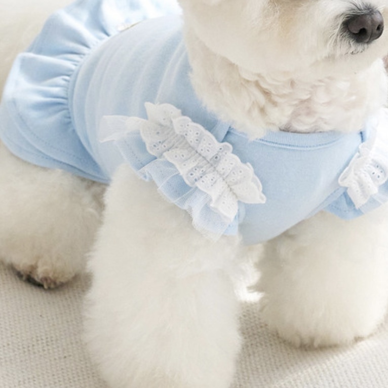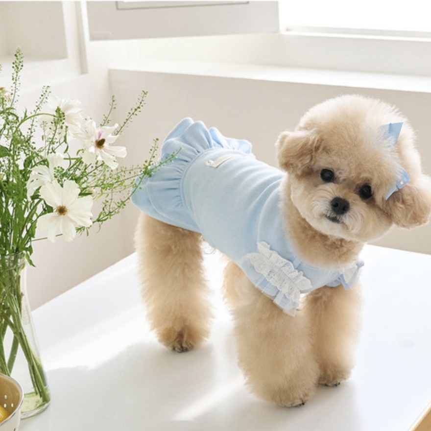 小巧的荷葉邊袖子,袖子毛不打結,不分犬種都可以穿着。