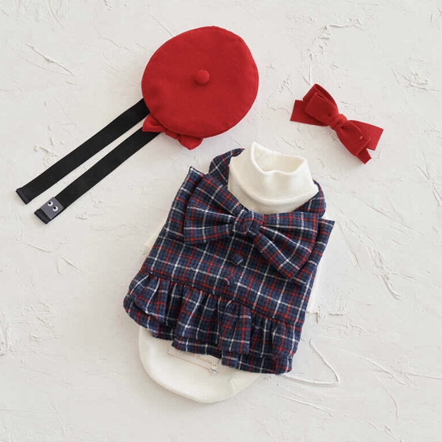 經典格紋和大蝴蝶結搭配裙子,