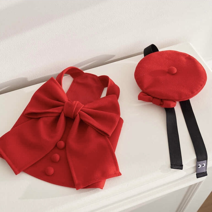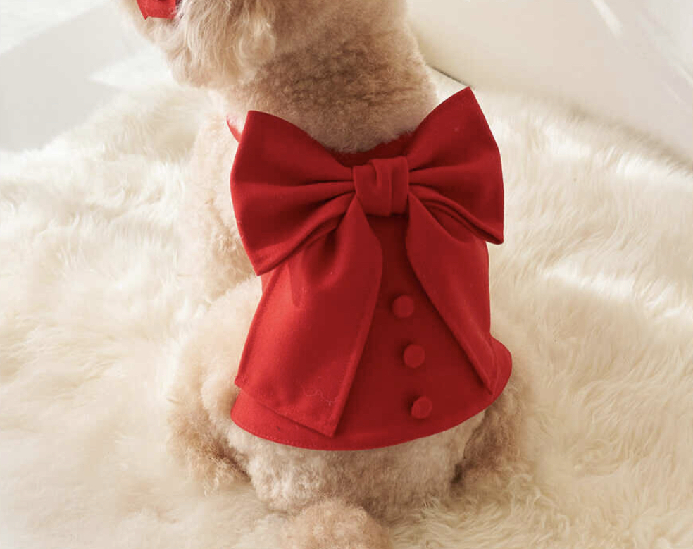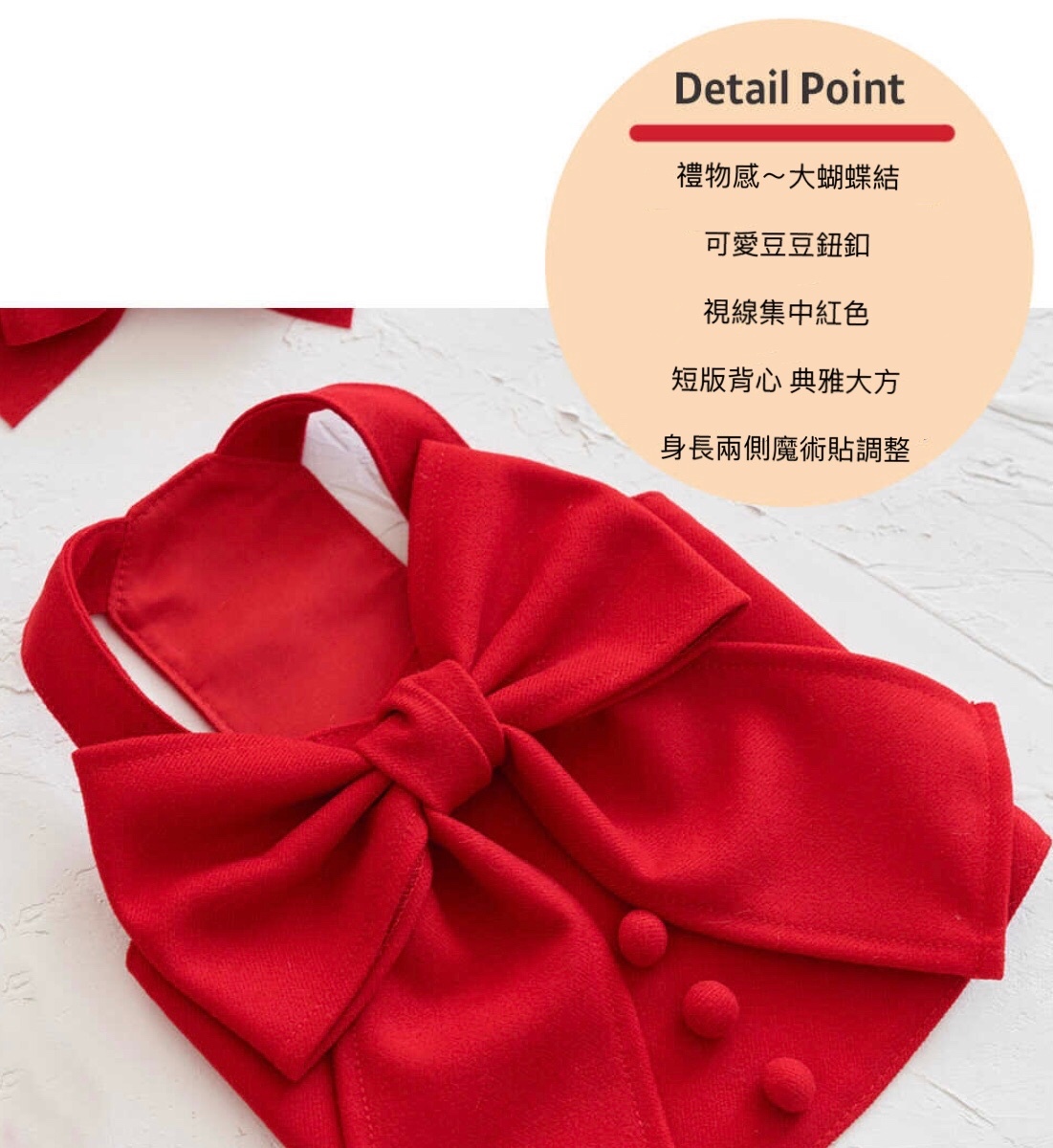 Merry Ribbon Top (Red)備受喜愛的牛仔緞帶系列~禮物感的雙毛絨精緻版,以俏麗的紅色,加上大大的蝴蝶結,豆豆鈕釦,半剪裁長度長度,兩側魔術貼處理蝴蝶結絲帶、處處充滿可愛元素,魔術貼輕鬆取下,且為調整大小。可單獨或層疊式內搭