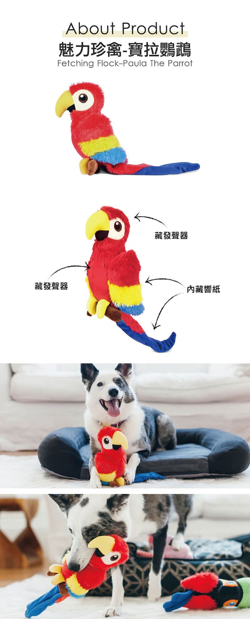 ♦尺寸:寶拉鸚鵡 10.9 × 14 × 39.4 cm