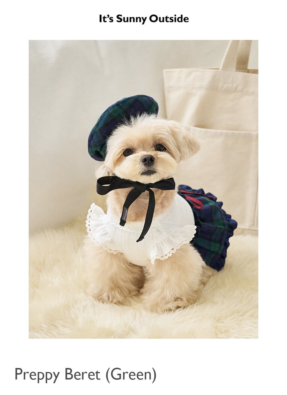 帶有 綠格子 的 輕巧 貝雷帽