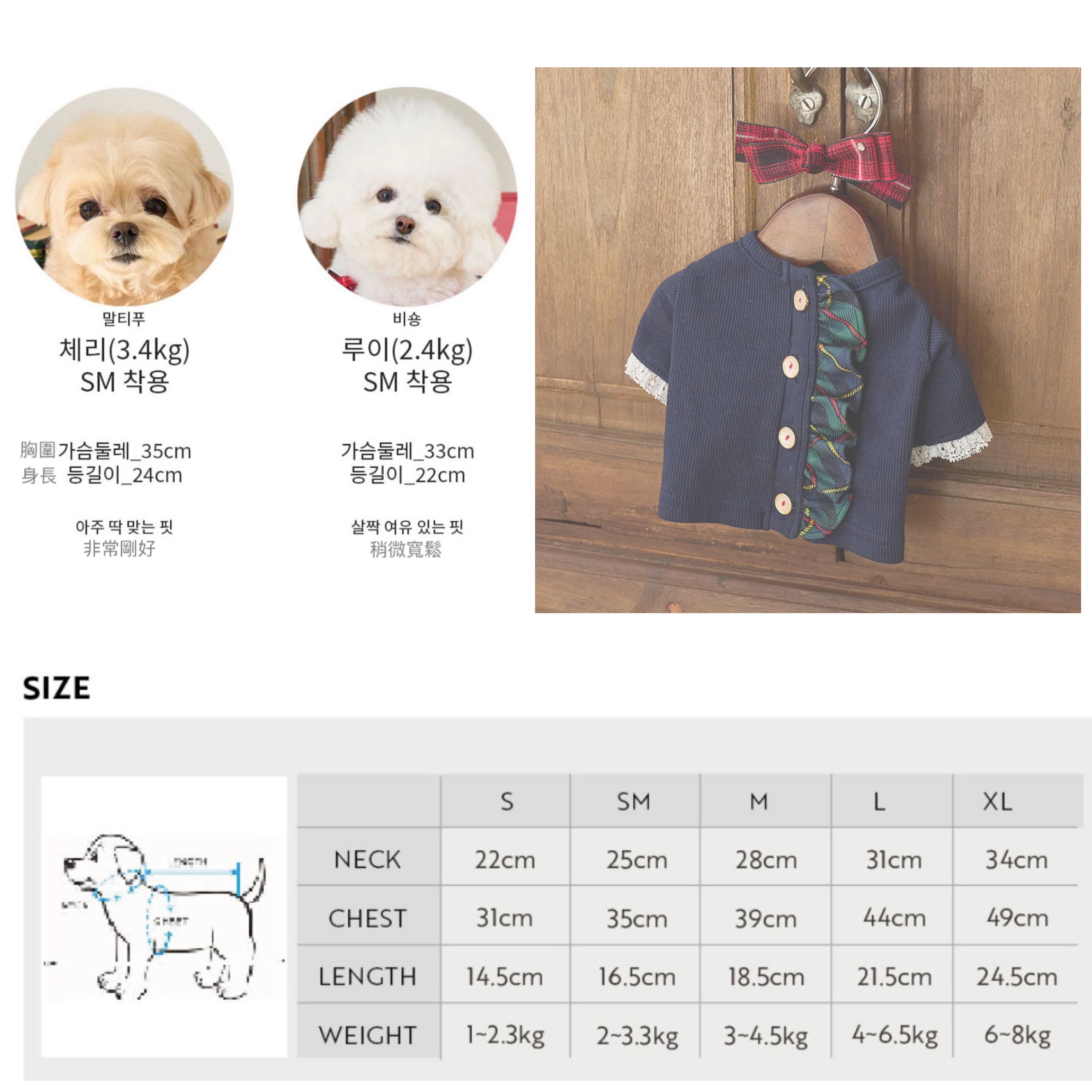 前面 的絲帶點、袖子蕾絲和後面的格子褶邊 色彩繽紛,精緻,值得擁有。