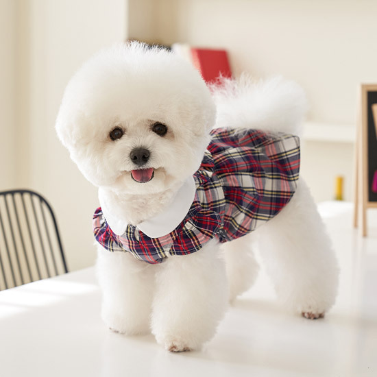 端莊的圓領,背部荷葉邊和包邊鈕釦的細節設計,彷彿要去上學囉,在學校會是最引人視線目光