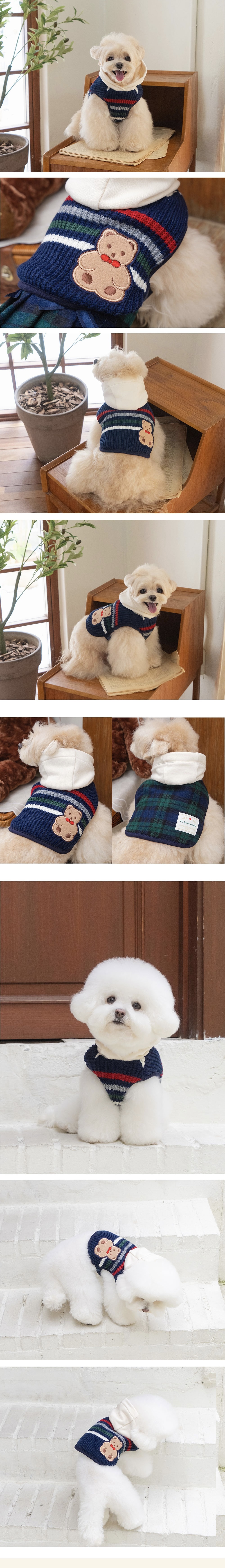 正面採柔軟針織布搭配熊熊刺繡徽章,