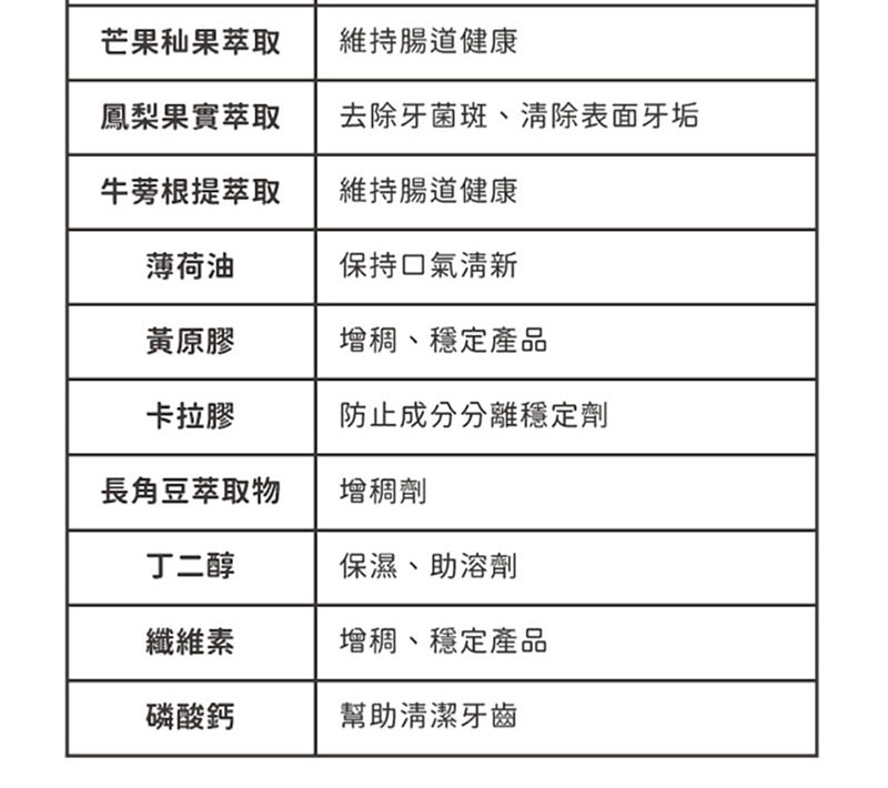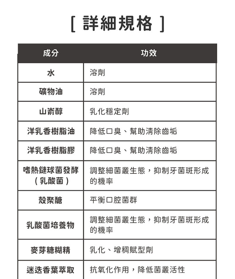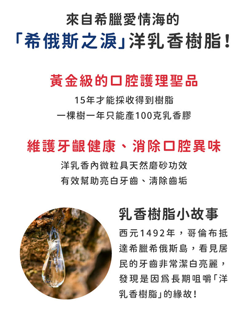 ● 獨家成分『洋乳香樹脂』調整細菌叢生態,幫助亮白牙齒,維護牙齦健康、清除齒垢