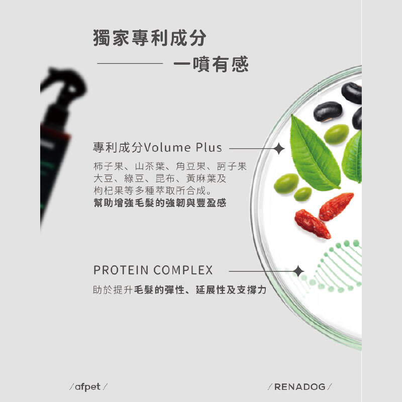 剪毛專用噴劑,針對提升毛髮的支撐力,延展性,以及彈性。