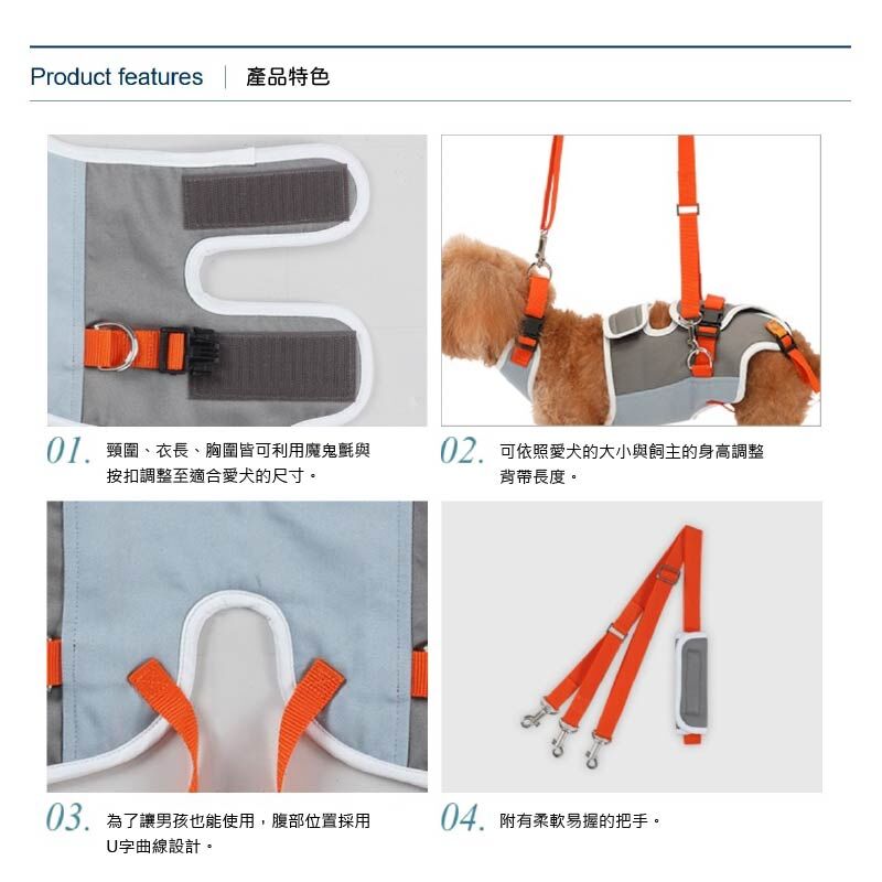 輔助用品,是接觸毛孩、身體、皮膚、毛髮之商品,適合穿戴在需要輔助的毛孩身上,例如老犬、復健、術後恢復需求之毛孩。