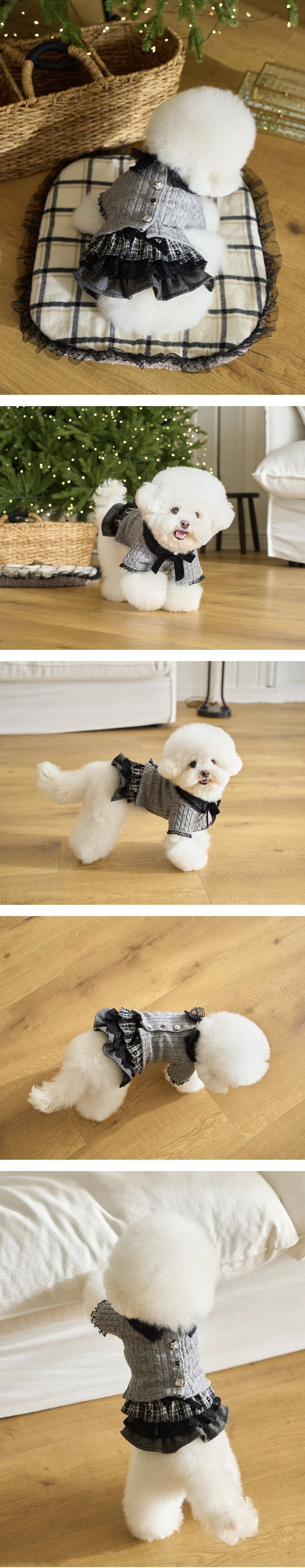 結合細緻蕾絲與格紋布料,展現多層次的精緻層疊感。