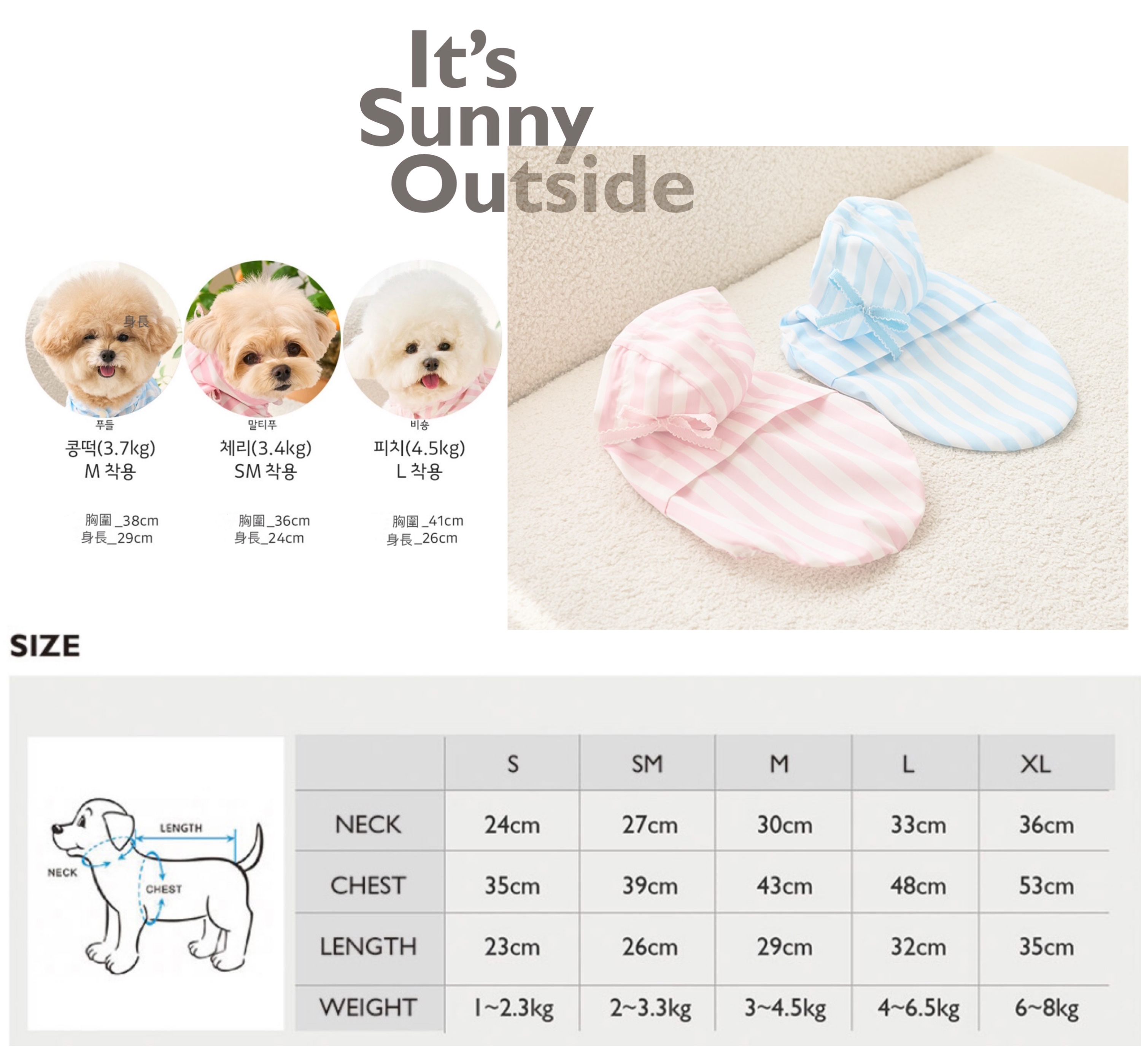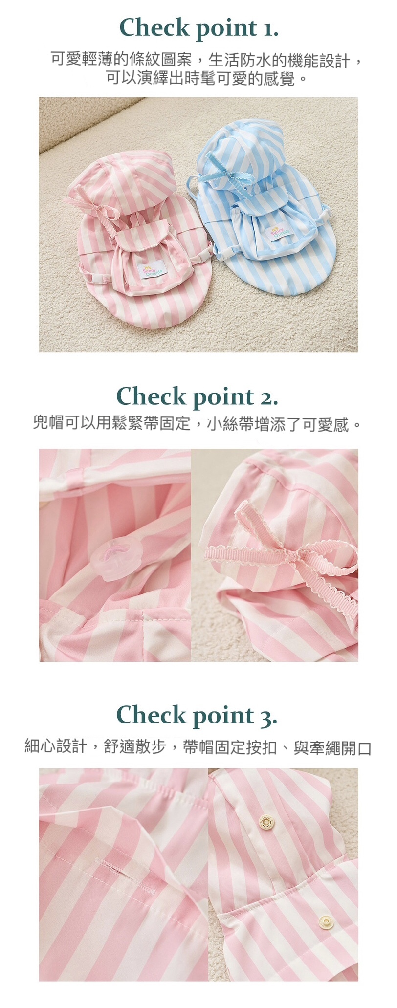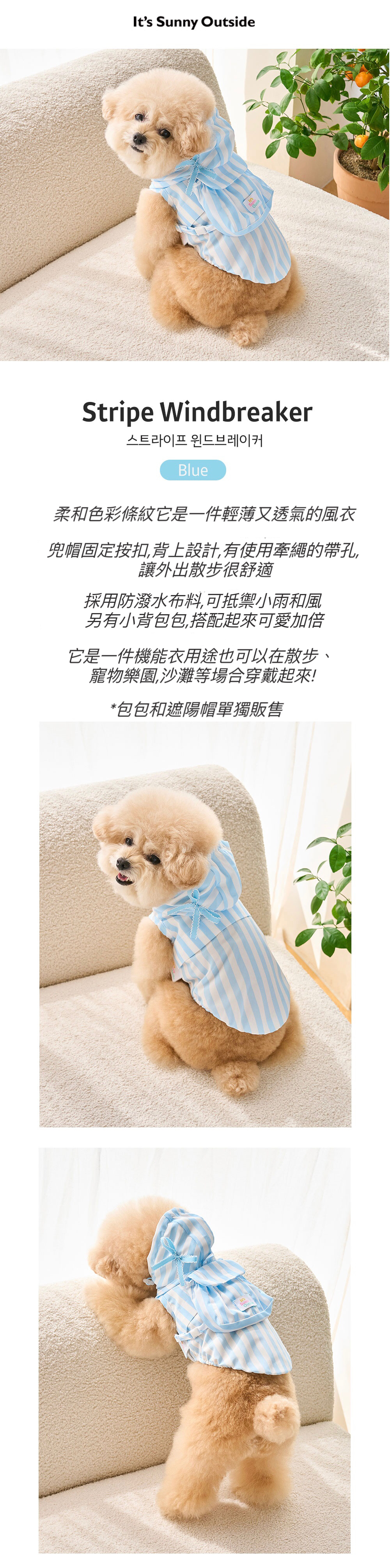 柔和色彩條紋它是一件輕薄又透氣的風衣 兜帽固定按扣,背上設計,有使用牽繩的帶孔, 讓外出散步很舒適