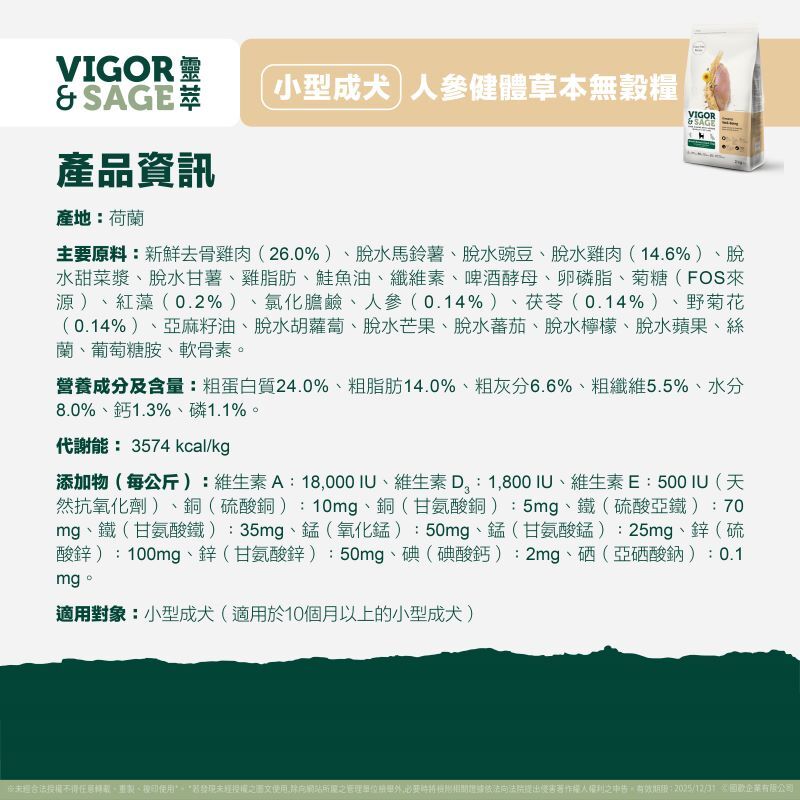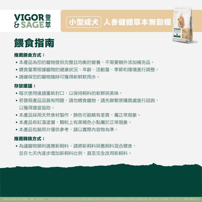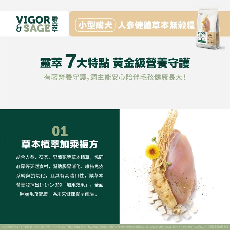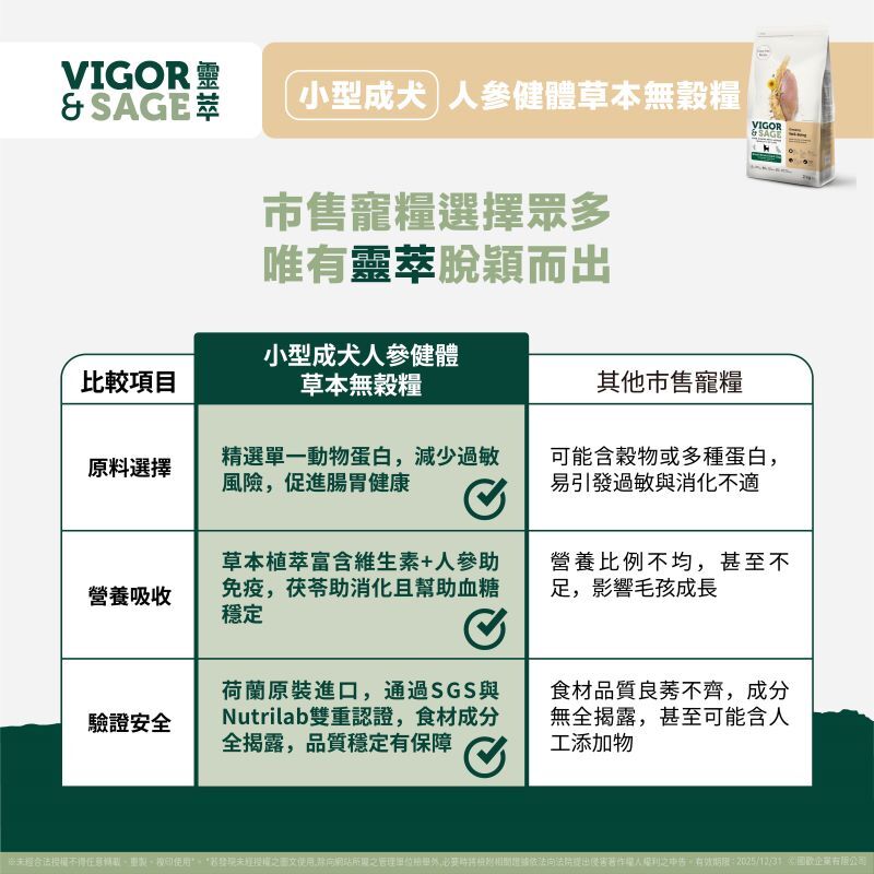 靈萃 小型成犬人參健體 草本無穀糧